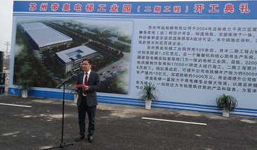 帝奧電梯總經(jīng)理薄建林作帝奧電梯工業(yè)園(二期工程)開工典禮項(xiàng)目介紹。